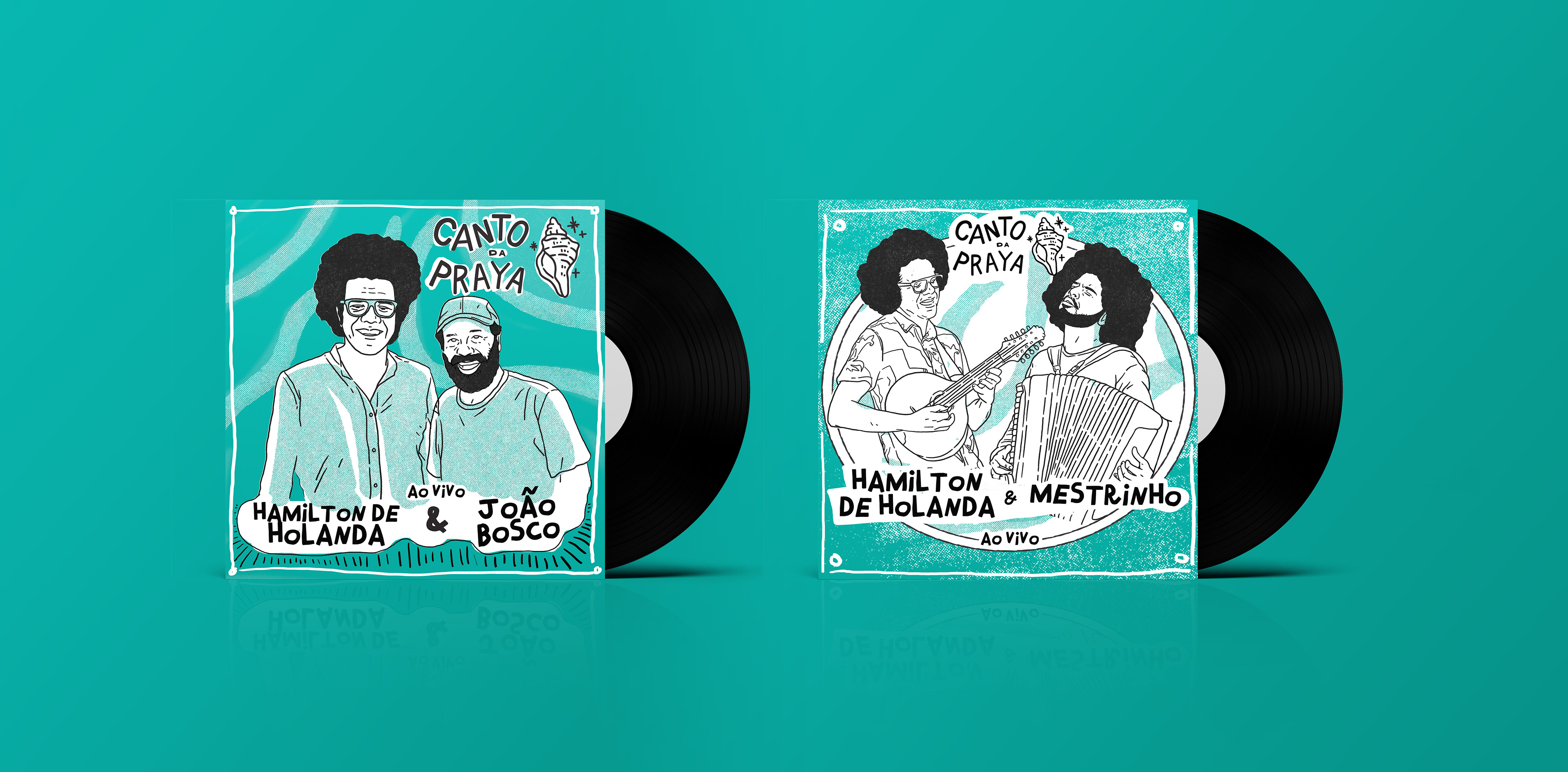 Desenvolvimento de logo e ilustrações para as capas do projeto "Canto da Praya": álbuns "Hamilton De Holanda & Mestrinho" e "Hamilton De Holanda & João Bosco".
