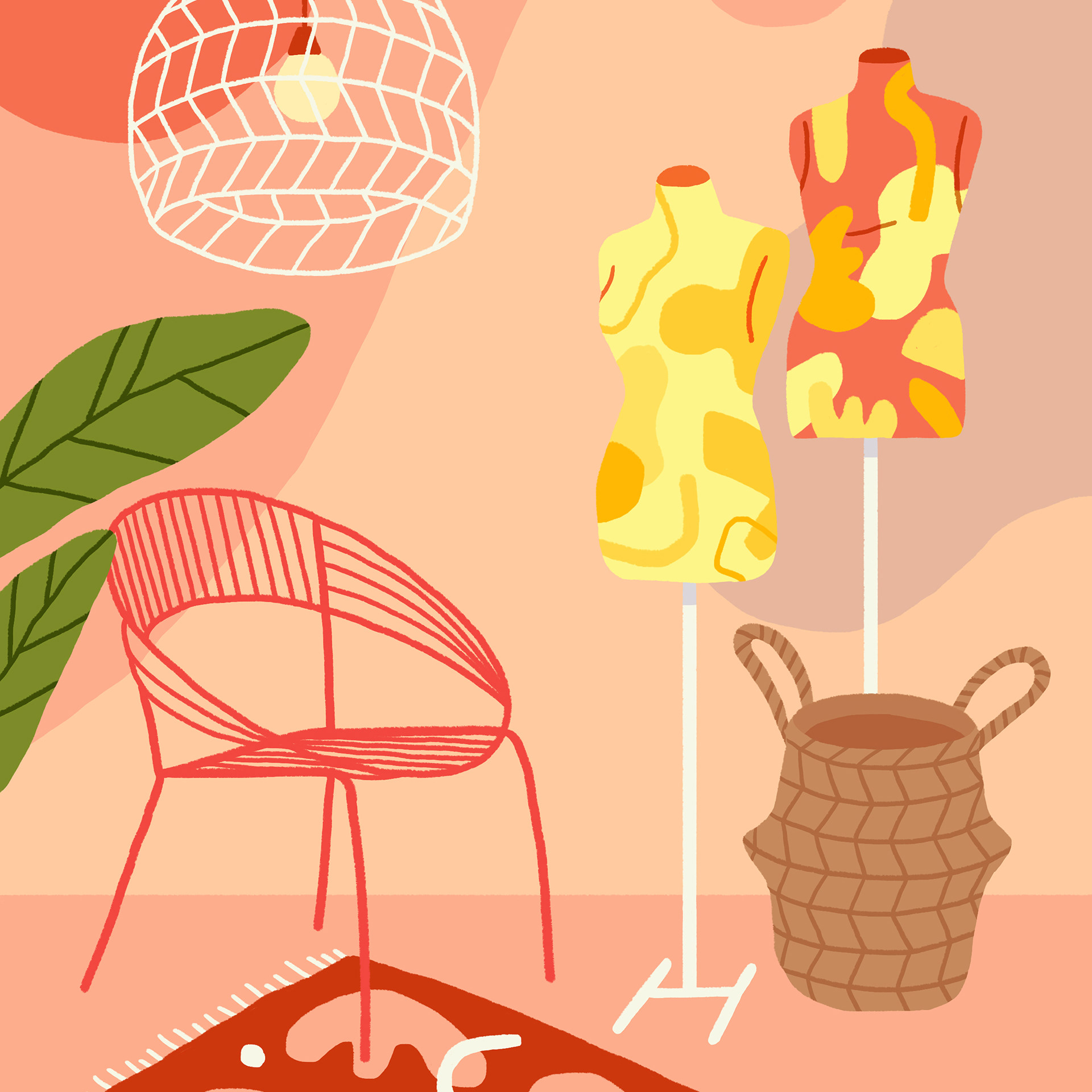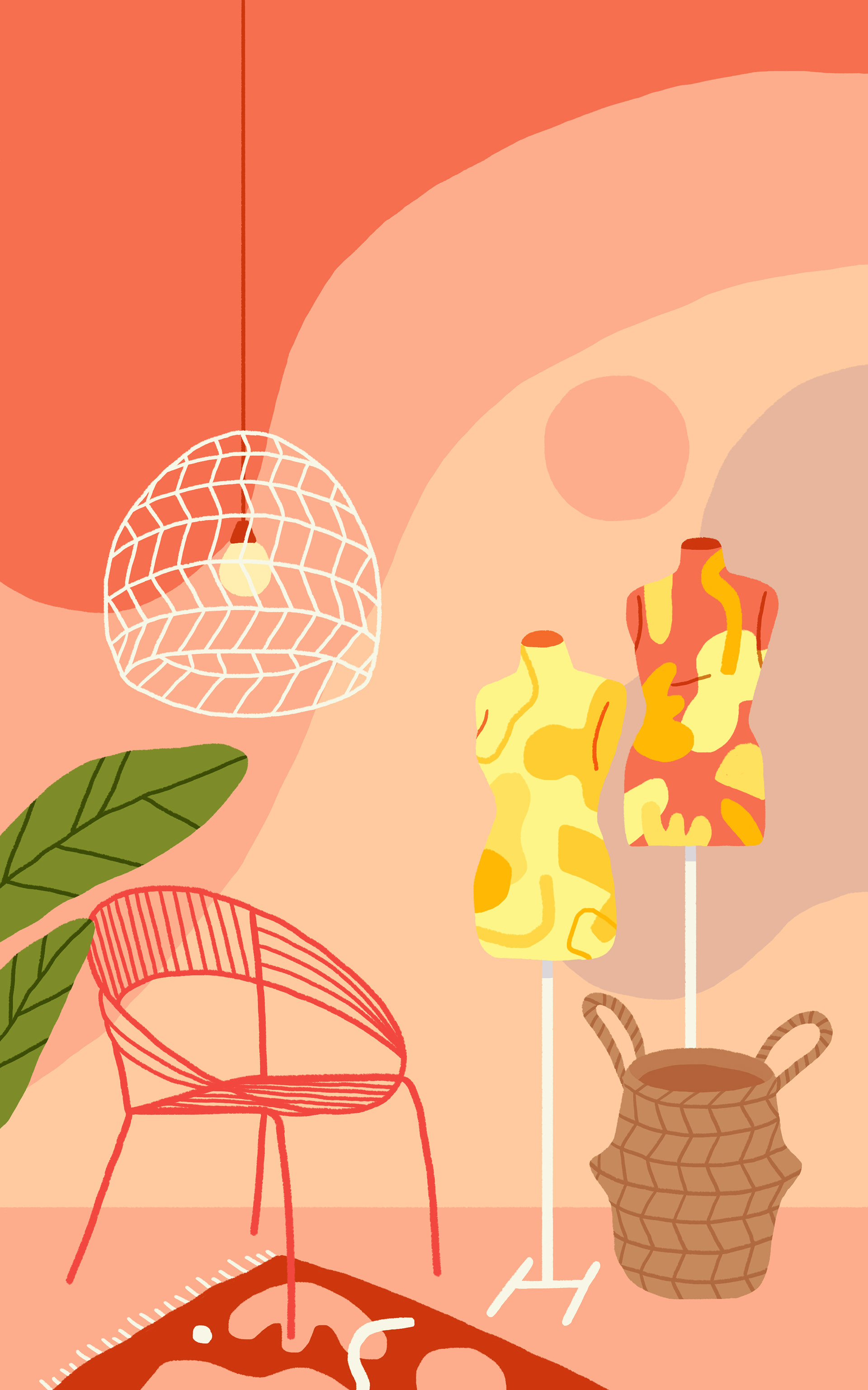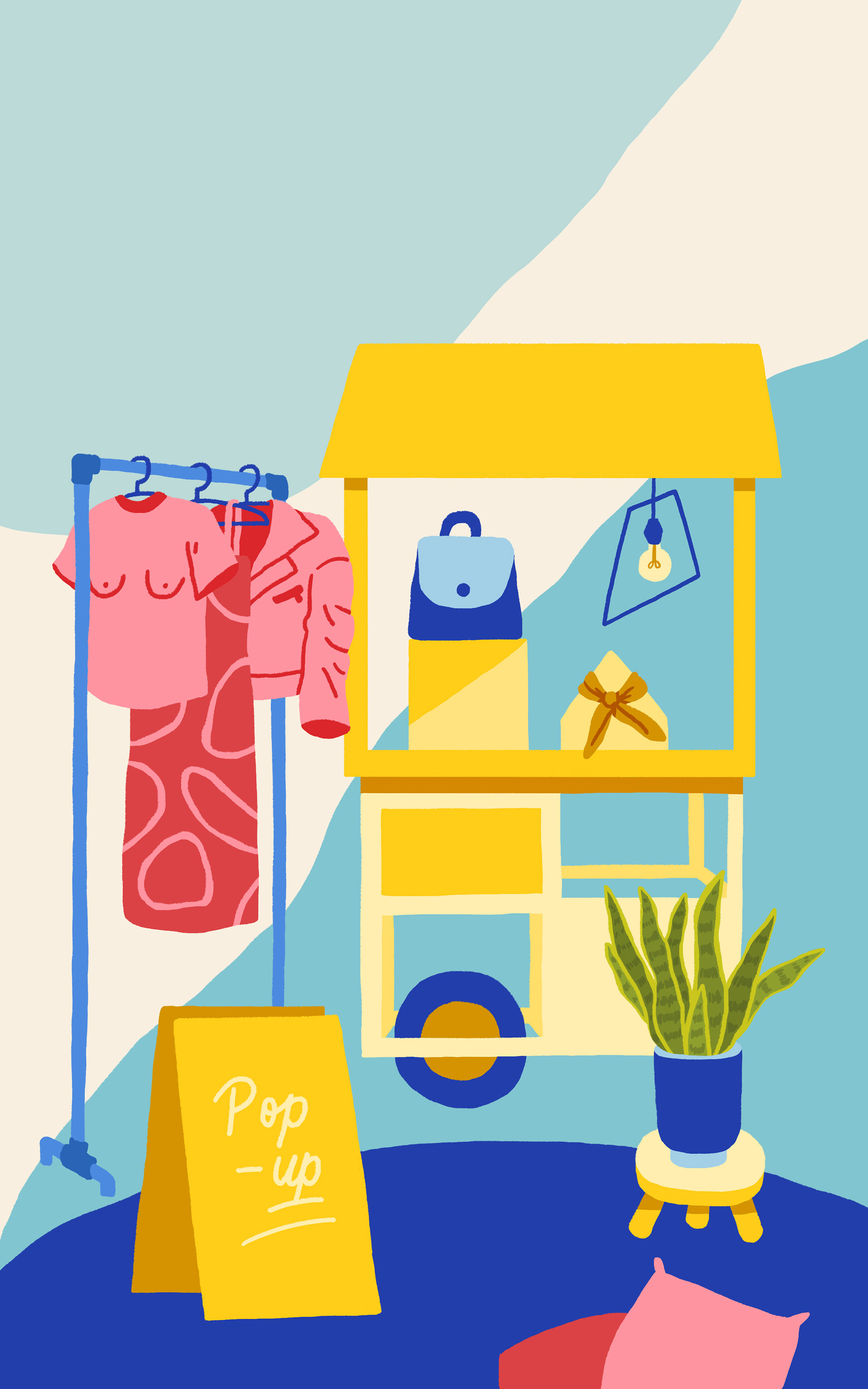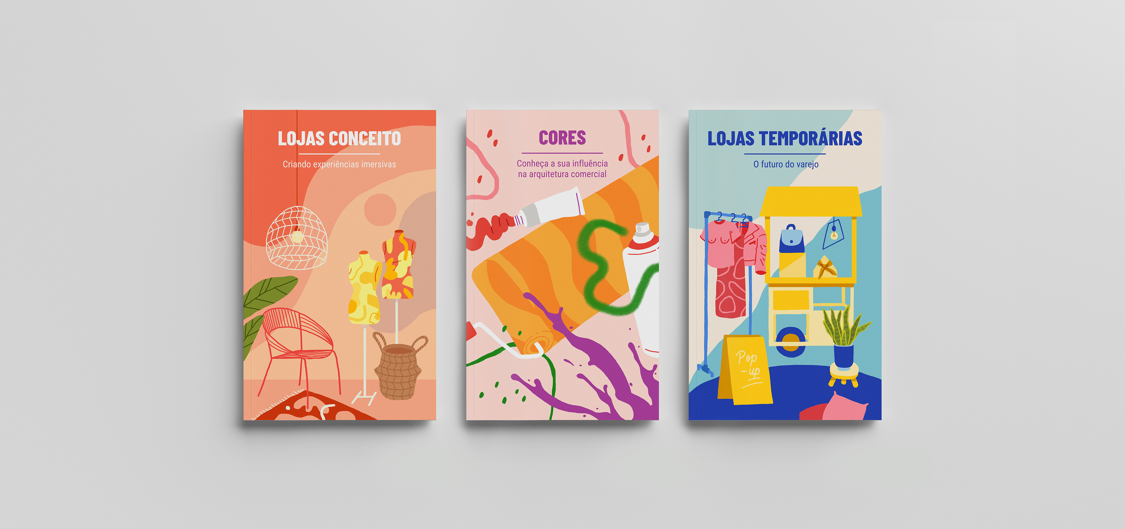 Ilustrações criadas para capas de 3 ebooks da Unpack Design: "Lojas Conceito", "Cores" e "Lojas Temporárias".